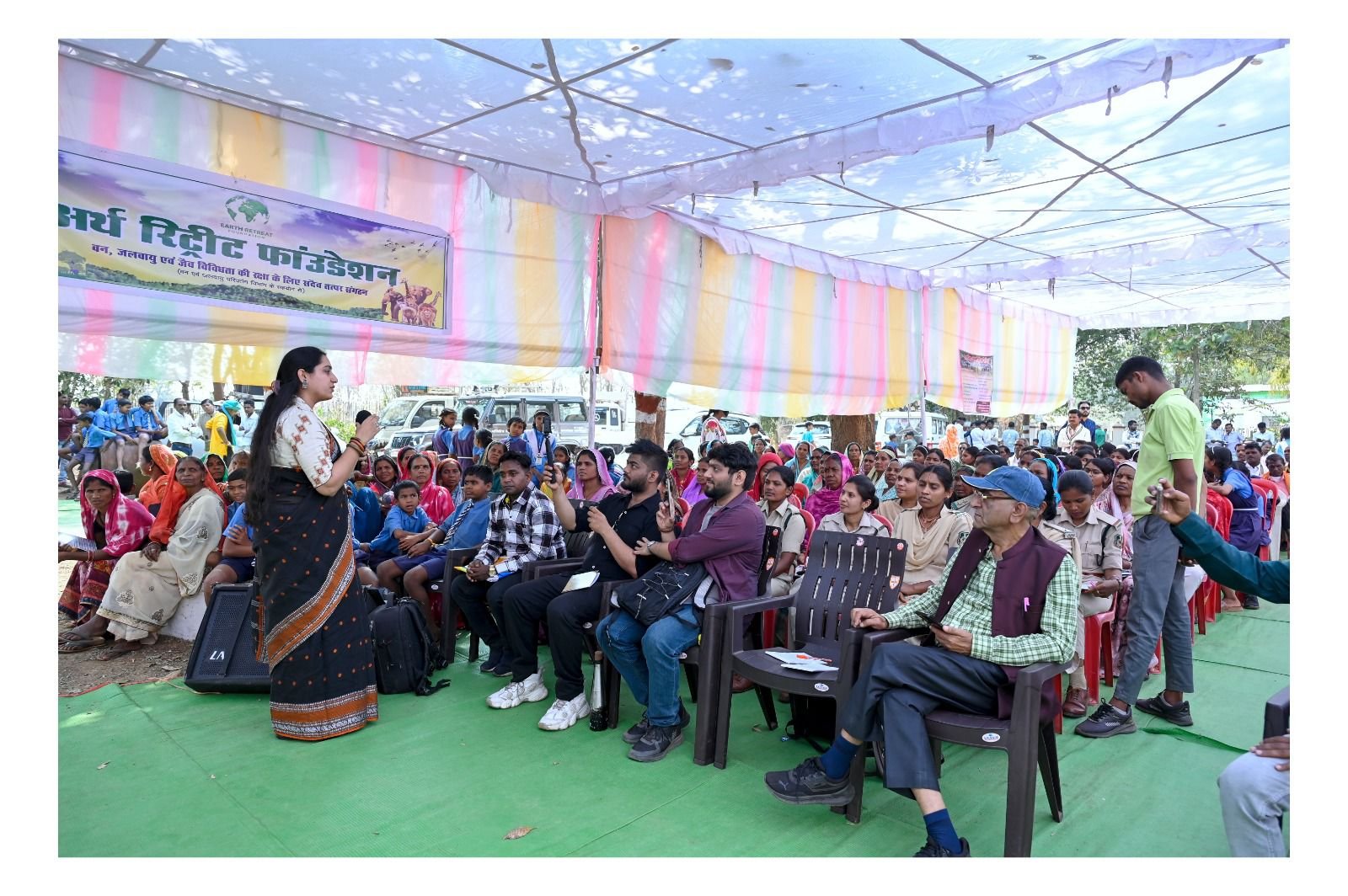 संस्थापक अनुभा द्विवेदी ने जलवायु परिवर्तन, जैव विविधता संरक्षण, वर्मीकम्पोस्ट निर्माण एवं स्वरोजगार से जुड़े विषयों पर जानकारी दी। पर्यावरण संरक्षण को सशक्त करने हेतु ग्रामीणों को पर्यावरण अनुकूल सामग्रियों के उपयोग के लिए प्रेरित किया गया और सामूहिक रूप से वन-संरक्षण का संकल्प लिया गया।