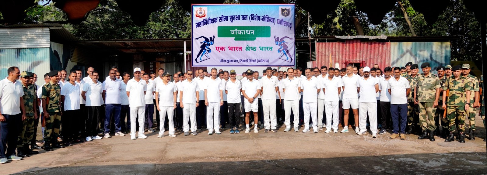 भिलाईनगर, 01 अक्टूबर। सामरिक मुख्यालय, महानिरीक्षक सीमा सुरक्षा बल (विशेष संक्रिया), छत्तीसगढ़ द्वारा कल “एक भारत, श्रेष्ठ भारत” अभियान के अंतर्गत वॉकथॉन का सफल आयोजन किया गया। यह आयोजन गिरधारी लाल मीणा, उप महानिरीक्षक (पी0 एस0ओ) के मार्गदर्शन में संपन्न हुआ।