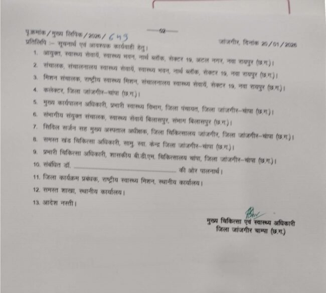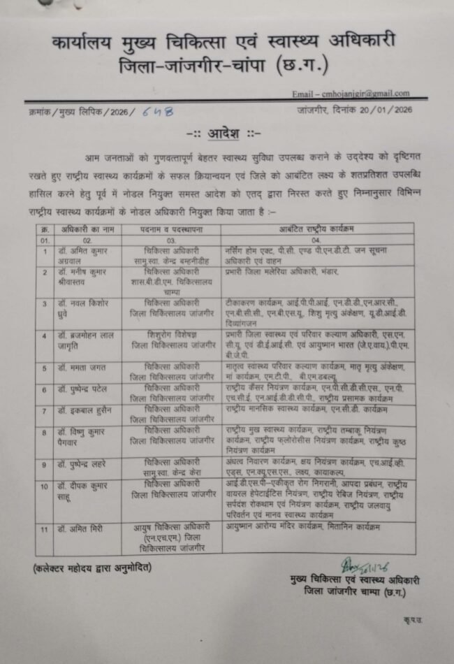 कभी-कभी खबरें शोर नहीं करतीं, लेकिन व्यवस्था के भीतर छिपी परतों को बेनकाब जरूर कर देती हैं। जांजगीर-चांपा जिले के स्वास्थ्य विभाग में लिया गया एक प्रशासनिक निर्णय इन दिनों इसी वजह से चर्चा के केंद्र में है।