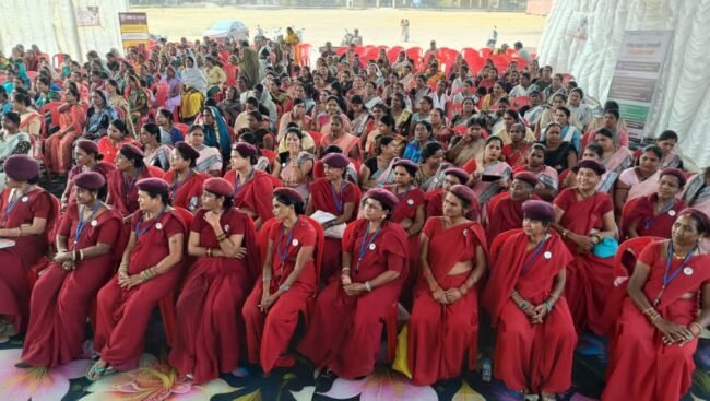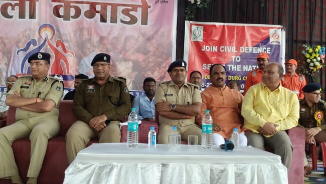 भिलाईनगर, 22 फरवरी 2026। थाना खुर्सीपार अंतर्गत श्रीराम मैदान में महिला कमांडो हेतु सिविल डिफेंस प्रशिक्षण एवं प्रेरणा सम्मेलन का आयोजन किया गया। कार्यक्रम में पद्मश्री से सम्मानित समाजसेवी Shamshad Begum एवं वरिष्ठ पुलिस अधीक्षक Vijay Agrawal की गरिमामयी उपस्थिति रही।