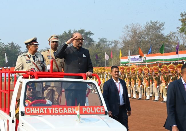 रायपुर, 26 जनवरी 2026। गणतंत्र दिवस के अवसर पर राज्यपाल श्री रमेन डेका द्वारा आज यहां राजधानी रायपुर में पुलिस परेड ग्राउंड में राष्ट्रीय ध्वज फहराया गया और परेड की सलामी ली गई। परेड निरीक्षण के दौरान मुख्य सचिव श्री विकास शील और पुलिस महानिदेशक श्री अरूण देव गौतम भी उपस्थित थे।