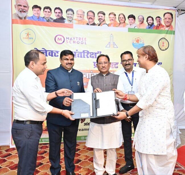 रायपुर, 05 सितंबर। मुख्यमंत्री श्री विष्णु देव साय ने आज शिक्षक दिवस के विशेष अवसर पर मुख्यमंत्री निवास परिसर से स्कूली बच्चों में अंतरिक्ष विज्ञान के प्रति जागरूकता के लिए मिशन अंतरिक्ष और प्रोजेक्ट जय विज्ञान अभियान का शुभारंभ किया। इस दौरान जिला प्रशासन रायपुर और इग्नाइटिंग ड्रीम्स ऑफ यंग माइंड फाउंडेशन तथा जिला प्रशासन रायपुर और विज्ञान भारती के मध्य दो महत्वपूर्ण समझौते हुए, जिनसे बच्चों को अंतरिक्ष से जुड़े विषयों की महत्वपूर्ण जानकारी प्राप्त होगी।