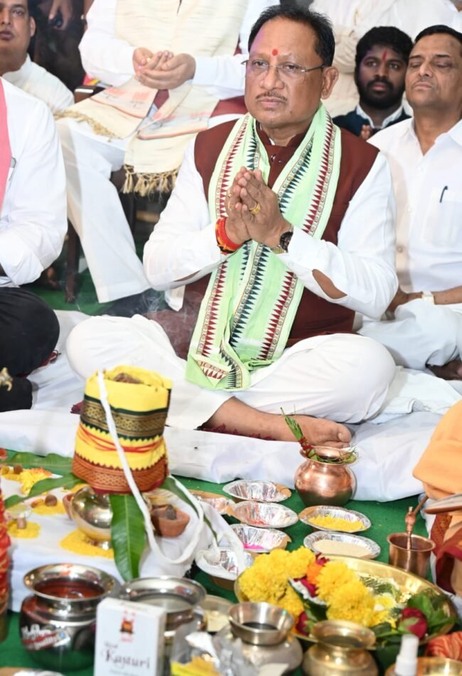 सीजी न्यूज ऑनलाइन 24 जुलाई। छत्तीसगढ़ी लोक संस्कृति के पहले पर्व “हरेली” पर मुख्यमंत्री श्री विष्णु देव साय ने आज राजधानी स्थित अपने निवास कार्यालय में गौरी-गणेश, नवग्रह की पूजा कर भगवान शिव का अभिषेक किया।