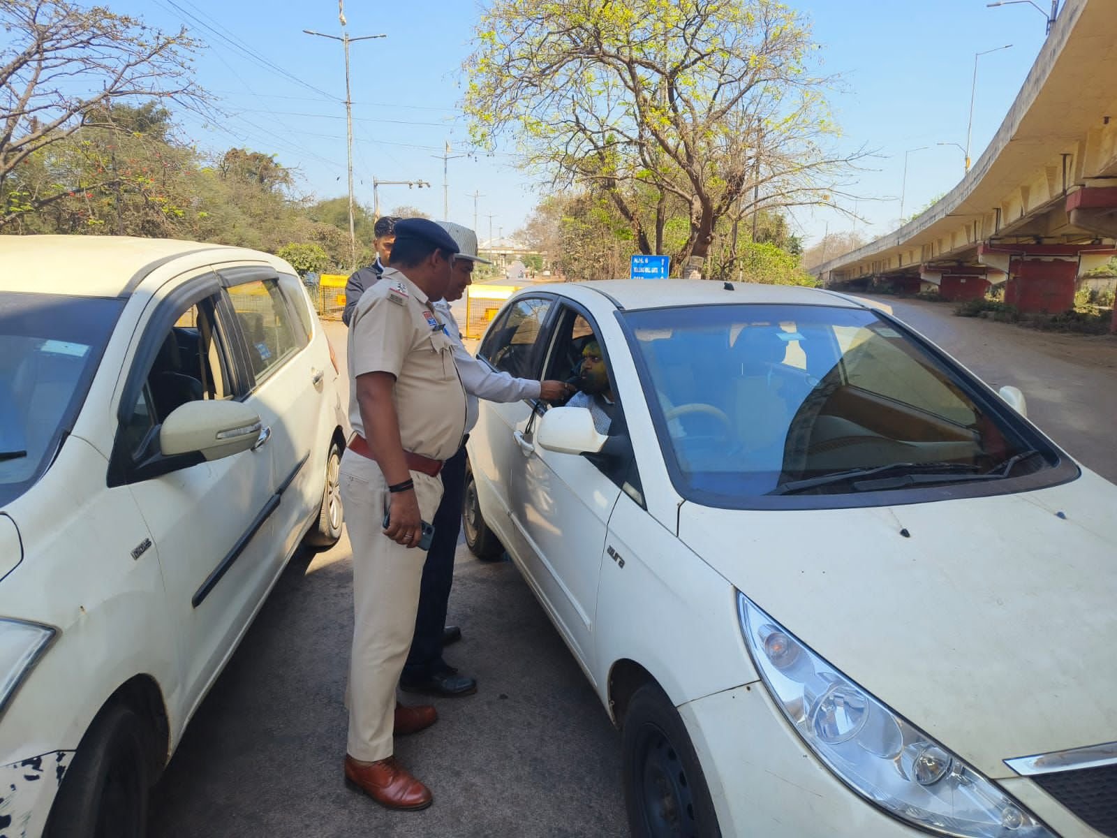 पुलगांव चौक, पटेल चौक, ग्रीन चौक, जेल तिराहा, नेहरू नगर चौक, सेक्टर-9 चौक, 25 मिलियन चौक, अवंती बाई चौक, छावनी चौक, खुर्सीपार चौक, मुर्गा चौक, डीपीएस चौक, जुनवानी चौक सहित अन्य प्रमुख स्थानों पर लगातार जांच अभियान चलाया गया।