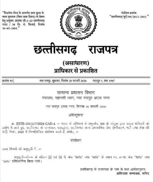 सीजी न्यूज ऑनलाइन, 21 फरवरी। अब डिप्टी कलेक्टर के 50% रिक्त पदोन्नति के माध्यम से भरे जाएंगे।