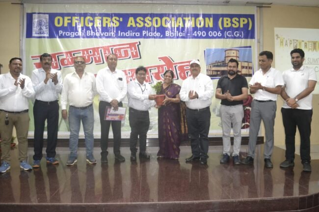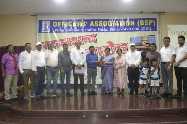 भिलाई नगर 30 जून। बी.एस.पी. आफिसर्स एसोसिएशन द्वारा जून 2025 में सेवानिवृत्त अधिकारियों के दीर्घ सेवा एवं उनके उत्कृष्ट योगदान हेतु सम्मान समारोह का आयोजन प्रगति भवन, सिविक सेंटर, भिलाई में किया गया। इस समारोह सेफी चेयरमेन एवं आफिसर्स एसोसएिशन के अध्यक्ष नरेंद्र कुमार बंछोर, महासचिव परविंदर सिंह सहित कोषाध्यक्ष अंकुर मिश्रा, उपाध्यक्ष द्वय तुषार सिंह, अखिलेश मिश्रा, उपाध्यक्ष माइंस नितेश छत्री, सचिव द्वय संजय तिवारी, जे पी शर्मा उपस्थित थे।