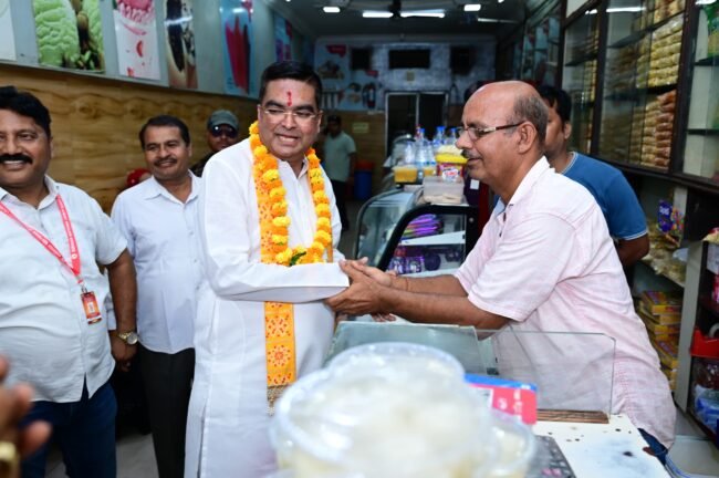भिलाई नगर, 22 सितंबर। आज जीएसटी में ऐतिहासिक सुधार के लागू होने पर वैशाली नगर विधायक रिकेश सेन ने पावर हाऊस के प्रमुख जवाहर मार्केट और लिंक रोड की हर दुकानों तक पदयात्रा कर संचालकों को गुलाब फूल भेंट किया। इस दौरान व्यापारियों पर कर (Tax) का बोझ कम होने की बधाई देते हुए विधायक ने कहा कि इससे उपभोक्ताओं को वस्तुएं और सेवाएं पहले से अधिक किफायती दरों पर उपलब्ध होंगी।