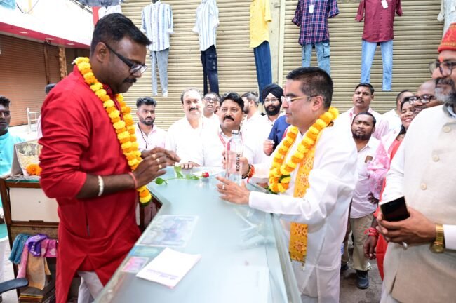 श्री सेन ने मार्केट का भ्रमण करने के बाद कहा कि आज नवरात्रि का पहला दिन है। हम सब लोग मां दुर्गा से मनाते हैं कि हमारे जीवन में सुख समृद्धि और शांति बनाए रखें। इस शुभ अवसर पर देश के प्रधानमंत्री नरेंद्र मोदीजी ने पूरे भारतवर्ष के व्यापारियों को, ग्राहकों को एक नई खुशी दी है, जीएसटी पर जिस प्रकार से रिफॉर्म किया गया है, इससे व्यापारियों के चेहरे पर खुशी है। आज जवाहर मार्केट वैशाली नगर विधानसभा के मुख्य मार्केट से लिंक रोड तक व्यापारियों को गुलाब का फूल देकर, उनका माला से स्वागत कर मैंने बधाई दी है। इस दौरान ग्राहकों से भी मुलाकात हुई, सभी ग्राहकों के भी चेहरे खिले हुए हैं। निश्चित रूप से देश के प्रधानमंत्रीजी ने अंतिम पंक्ति में बैठे हुए लोगों की हमेशा चिंता की है, इसके लिए भारत सरकार को बहुत बहुत धन्यवाद देता हूं।