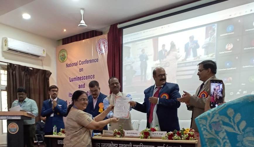 इससे पूर्व संयोजक डाॅ. जगजीत कौर सलूजा ने त्रिदिवसीय सम्मेलन की रूपरेखा को बताया किस प्रकार से यह शोध विद्यार्थियों एवं अनुसंधानों से जुड़े प्राध्यापकों के लिए उपयोगी सिध्द होगा। उन्होंने सम्मेलन में सम्मिलित सभी प्राध्यापकों, वैज्ञानिकों एवं विद्यार्थियों को इससे होने वाले अधिक से अधिक नवीनतम जानकारी प्राप्त करने का माध्यम बताया। एलएसआई के सचिव डाॅ. डी.पी. बिसेन, पंडित रविषंकर शुक्ल विष्वविद्यालय, रायपुर ने स्वागत भाषण देते हुए कहा कि भौतिकी को हमें अपने जीवन में शामिल करना होगा, जिससे नये-नये विचारों को दैनिक उपयोग में अपनाया जा सकता है। एलएसआई अध्यक्ष डाॅ. के.वी.आर. मूर्ति ने इस सोसायटी के माध्यम से ल्यूमिनिसेेंस में शोध कार्य करने हेतु विद्यार्थियों को प्रोत्साहित करते हुए अपने उद्बोधन में कहा कि सभी युवा वैज्ञानिकों को अपने शोध कार्य प्रस्तुतिकरण हेतु यह सम्मेलन प्रत्येक वर्ष कराया जाता है, जिससे वे अंतर्राष्ट्रीय ख्याति प्राप्त वैज्ञानिकों से मिल सके एवं उनसे नवीनतम जानकारी प्राप्त कर शोध को पूूर्ण कर सके। प्राचार्य डाॅ. आर.एन. सिंह ने सभी माननीय अतिथियों का स्वागत करते हुए जानकारी दी कि हमारा महाविद्यालय छत्तीसगढ़ राज्य का एकमात्र ए प्लस ग्रेड का महाविद्यालय है तथा इस महाविद्यालय में शोध का उच्च स्तरीय कार्य किया जाता है, उन्होंने महाविद्यालय की सभी उपलब्धियों को अतिथियों के सामने रेखांकित किया एवं सभी सम्मिलित विद्यार्थियों से कहा कि वे सभी इस सम्मेलन का अधिक से अधिक लाभ उठाये, जिससे उनका उद्देष्य सफल हो। सभी सम्मानीय अतिथियों द्वारा सम्मेलन की बुकलेट का विमोचन किया गया। इस अवसर पर एल.एसआई द्वारा डाॅ. जगजीत कौर सलूजा, डाॅ. नमिता ब्रम्हे एवं डाॅ. डी.पी. बिसेन को फेलो ल्यूमिनिसेंस सोसायटी आॅफ इंडिया पुरस्कार से सम्मानित किया गया। कार्यक्रम का सफल संचालन डाॅ. नेहा तिवारी, डाॅ. ख्याजा मोहद्दीन एवं नमन ठ्क्कर एवं धन्यवाद ज्ञापन डाॅ. विकास दुबे द्वारा किया गया।
